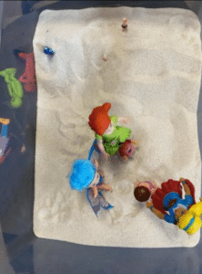 Grâce aux figurines, aux objets, au sable ou au plateau, la personne donne une forme concrète à sesreprésentations internes : sa place dans la famille, ses relations,ses tensions, ses héritages invisibles.